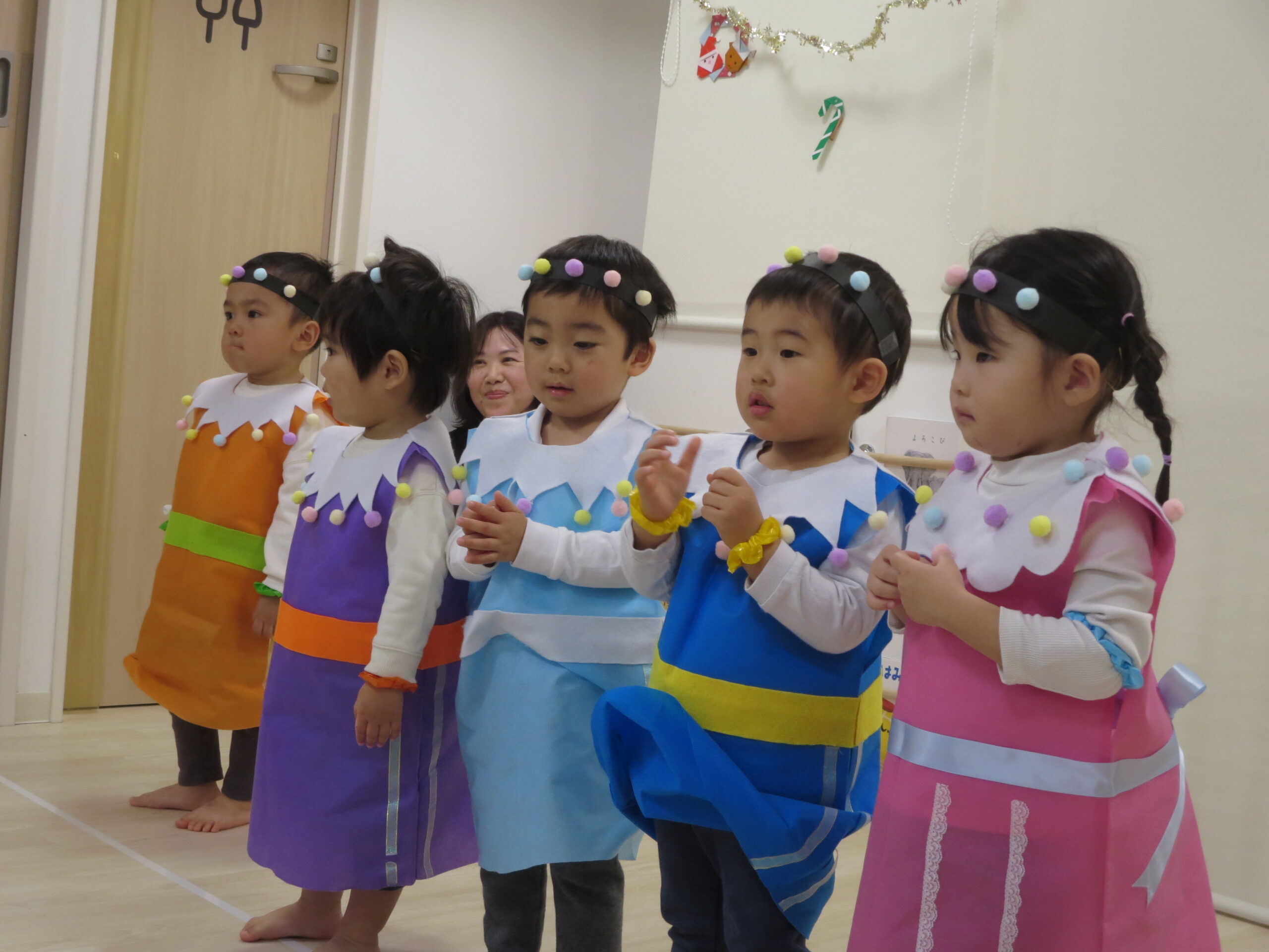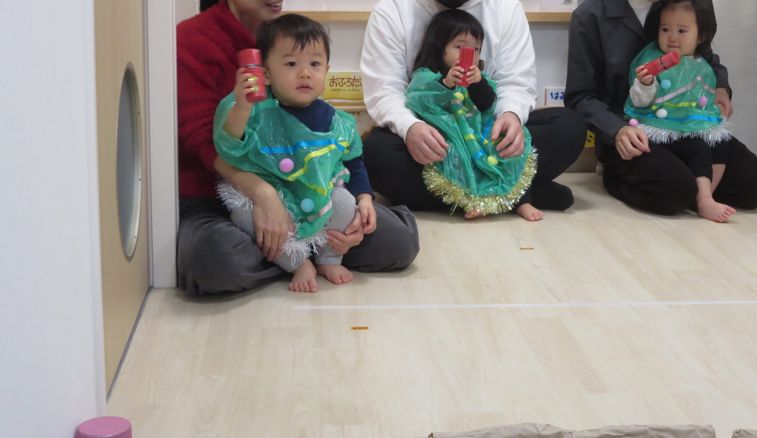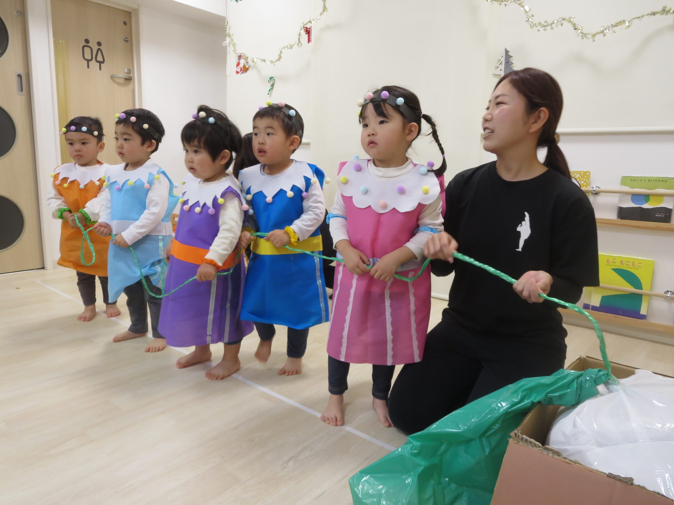 「やさいのうた」の手遊びと、手作りマラカスで「サンタが街にやってくる」を歌いました♪
