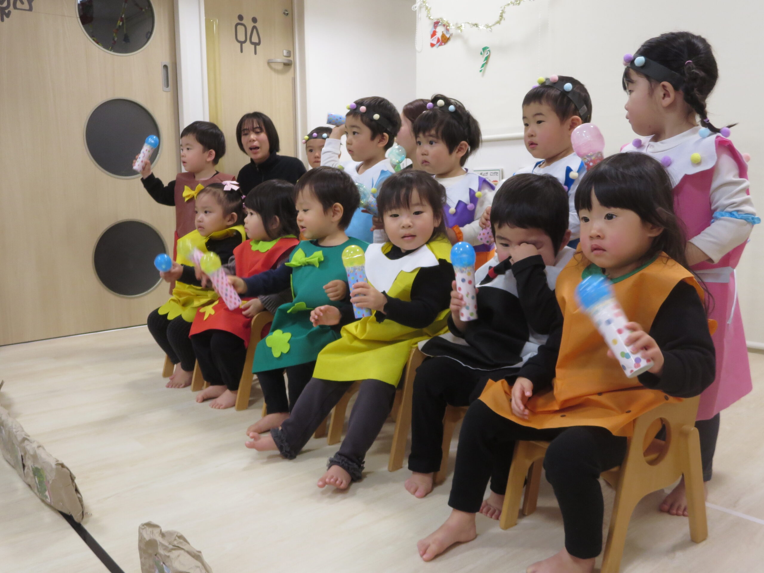 最後は1.2歳クラス合同で歌と楽器を披露しました♪