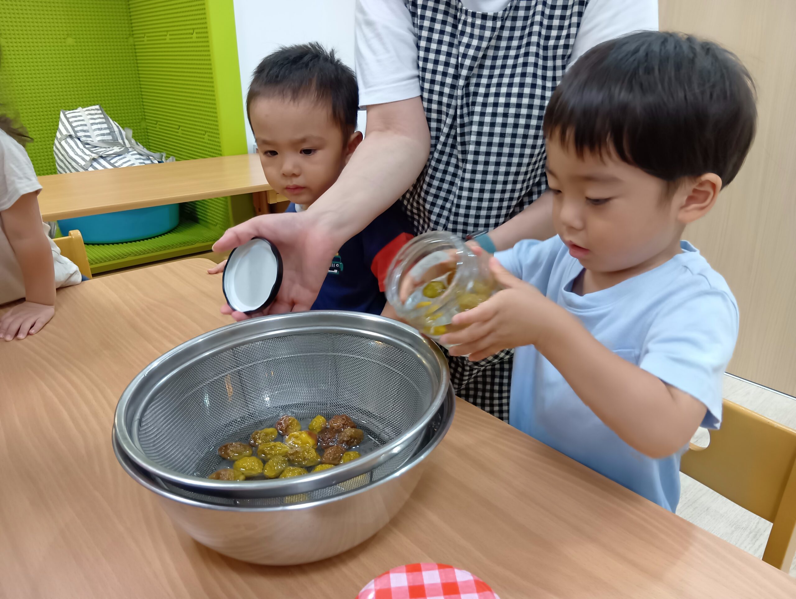 自分たちで仕込んだものが、時間の経過とともにどのように変化していくのか、その変化に「興味を持ち」発見する楽しみを味わいました。